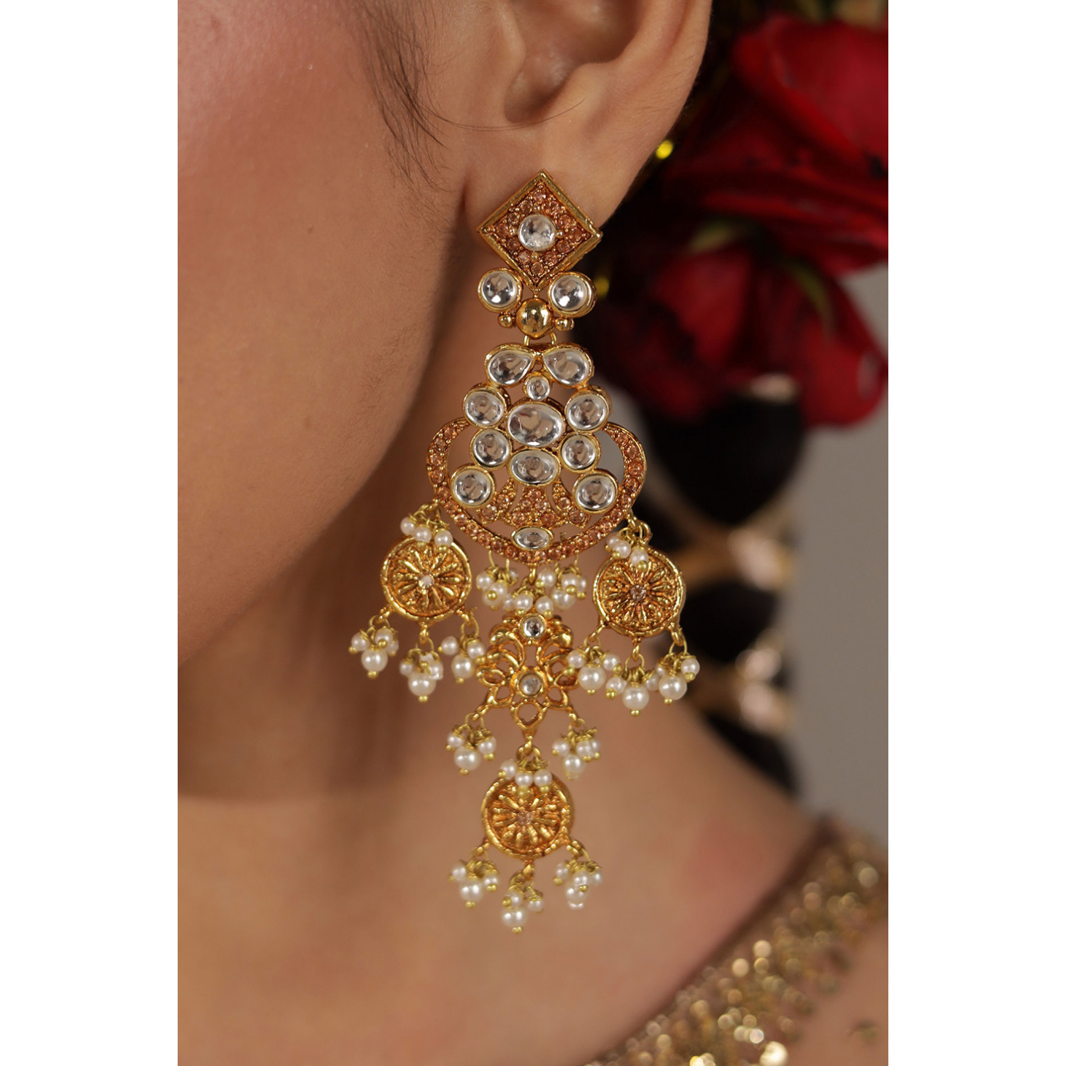 24 k gold plated, Kundan, pink stone, zircons with white pearls setting.
