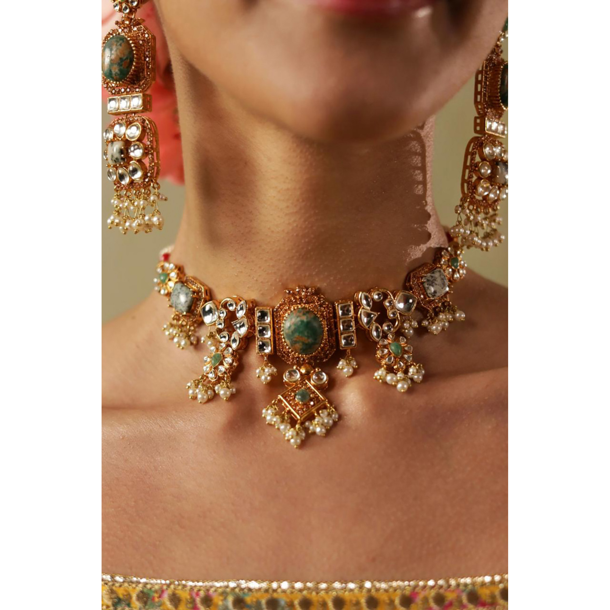 18k gold plated, Kundan, pink stone, zircons with white pearls setting.