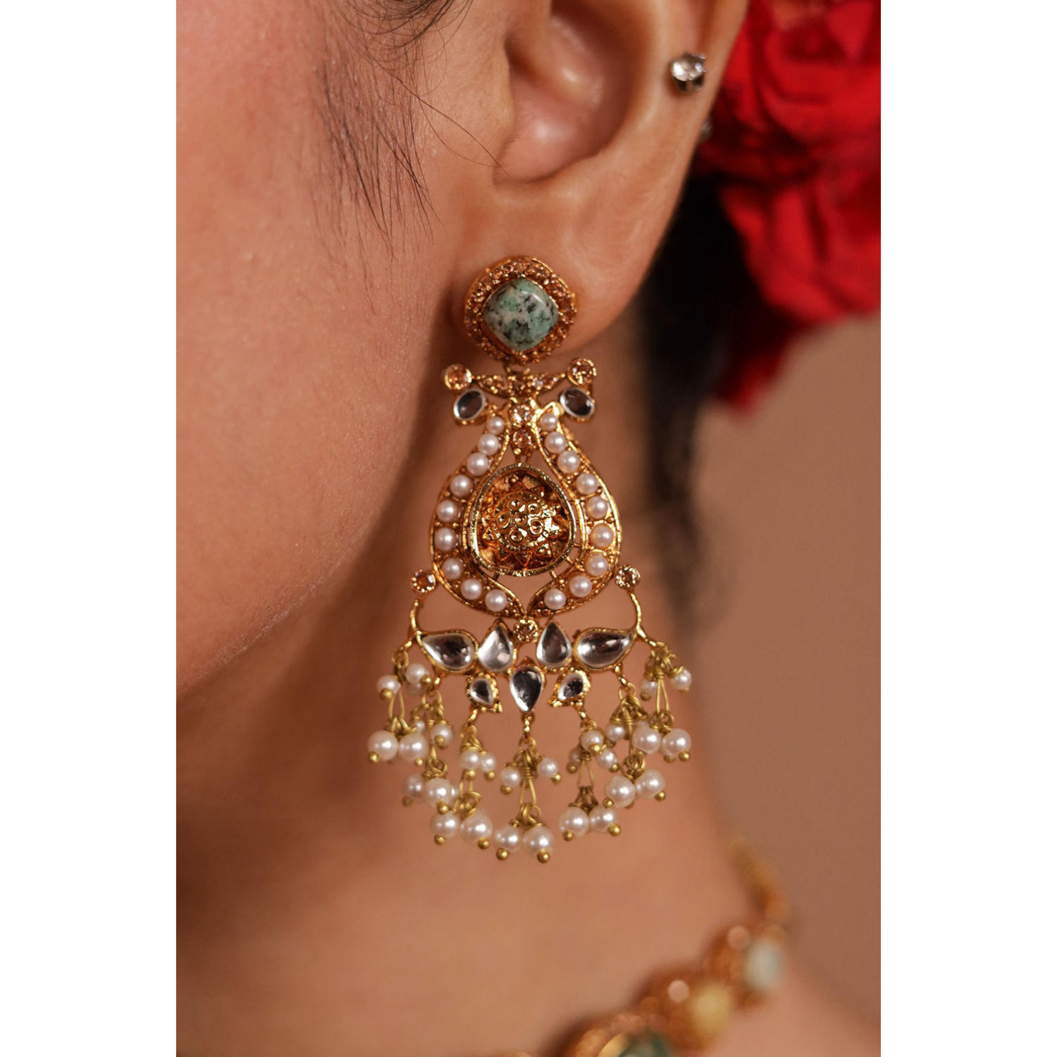24 k gold plated, Kundan, pink stone, zircons with white pearls setting.