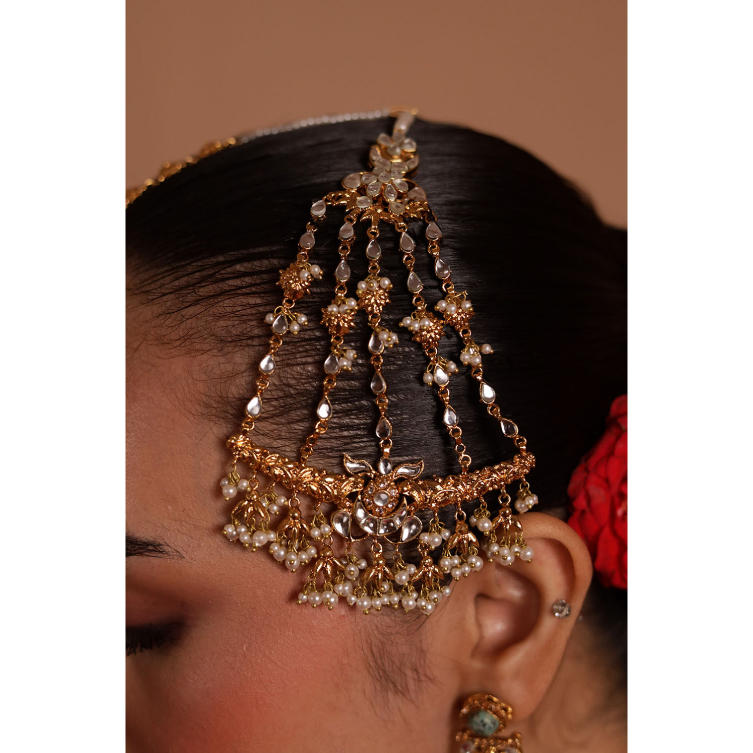 18k gold plated, Kundan and aventurine natural stone zircons with white pearls setting.