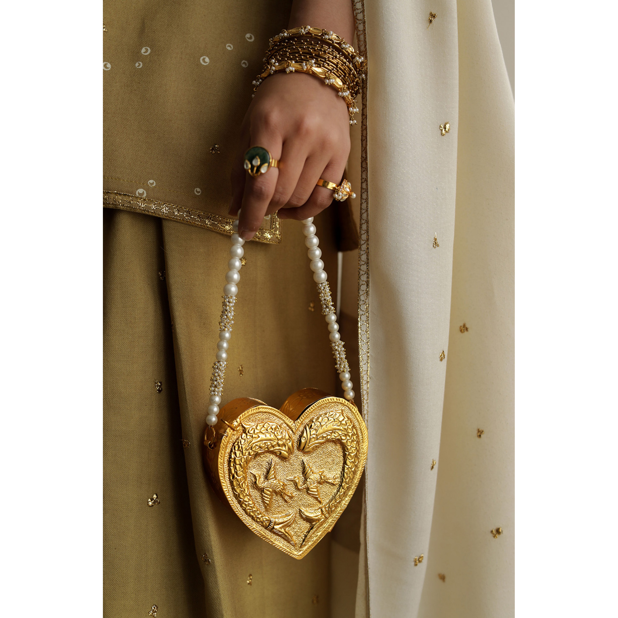 Handmade metel clutch intricately chased scales pattern on surface. Bag can hold some card/cash or a small lipstick concealer etc.